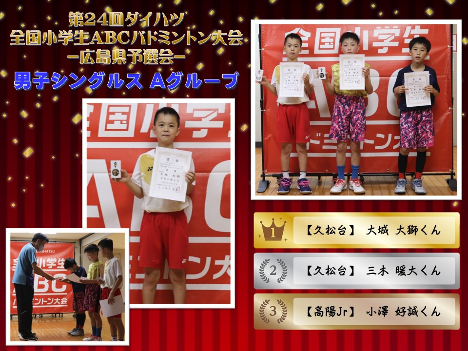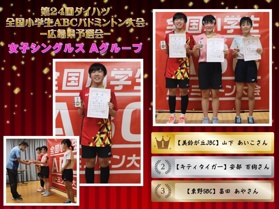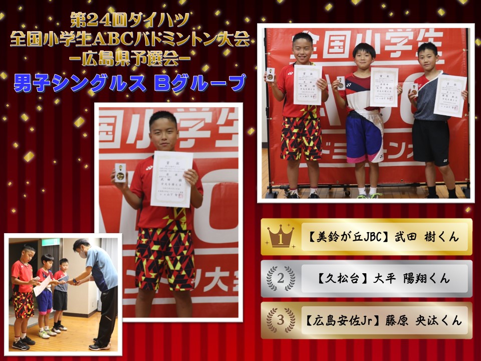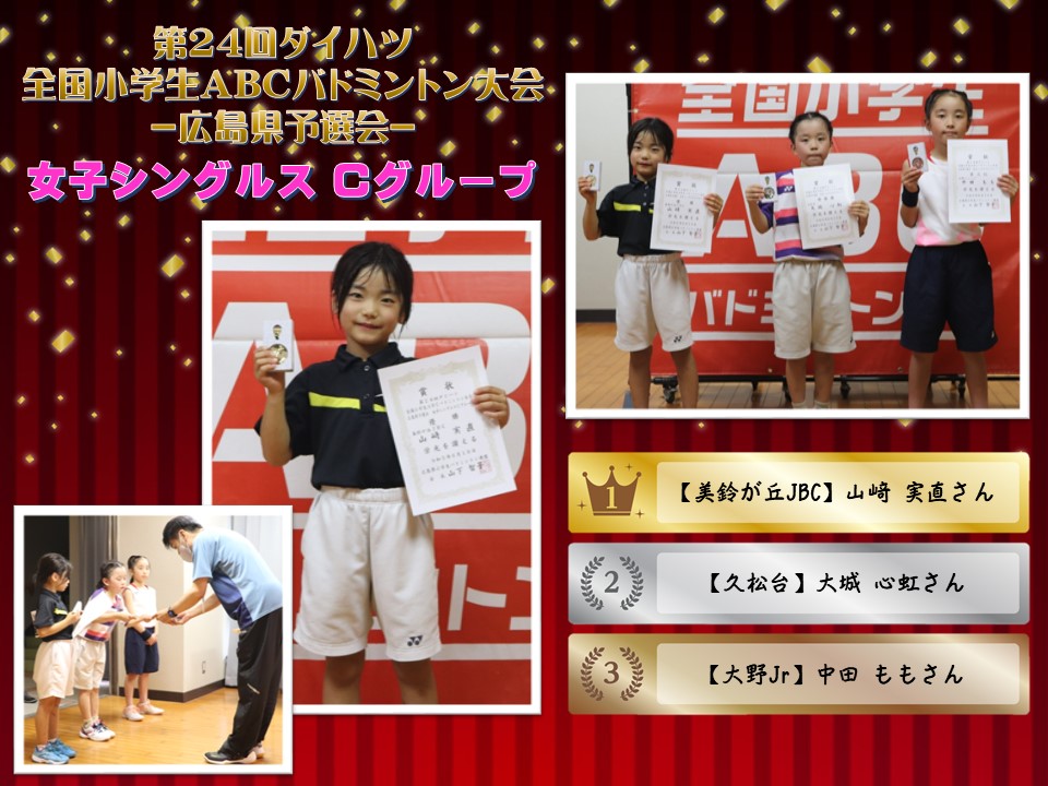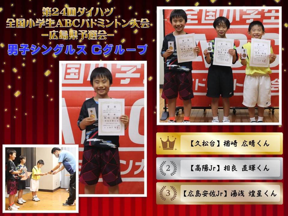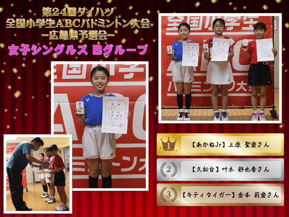 「第24回全国小学生ABCバドミントン大会 広島県予選会」の被表彰者をご紹介いたします。