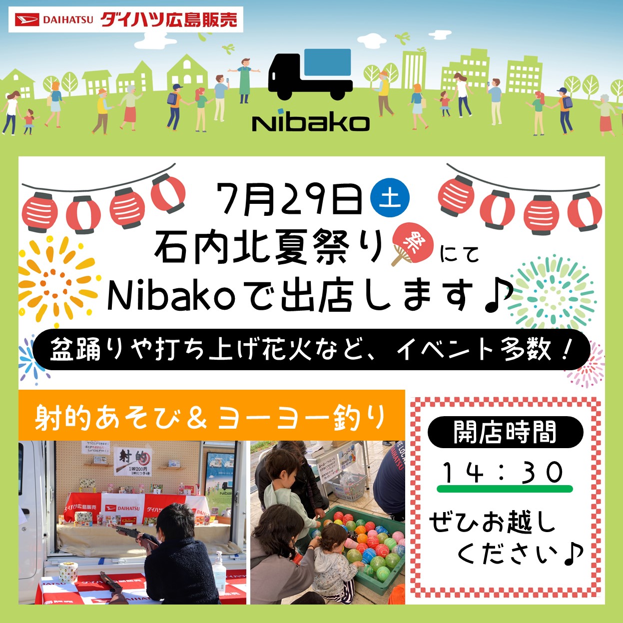 出店や縁日なども多数出店されるのですが……実は、ダイハツも「射的」と「ヨーヨー釣り」を出店させていただきます!