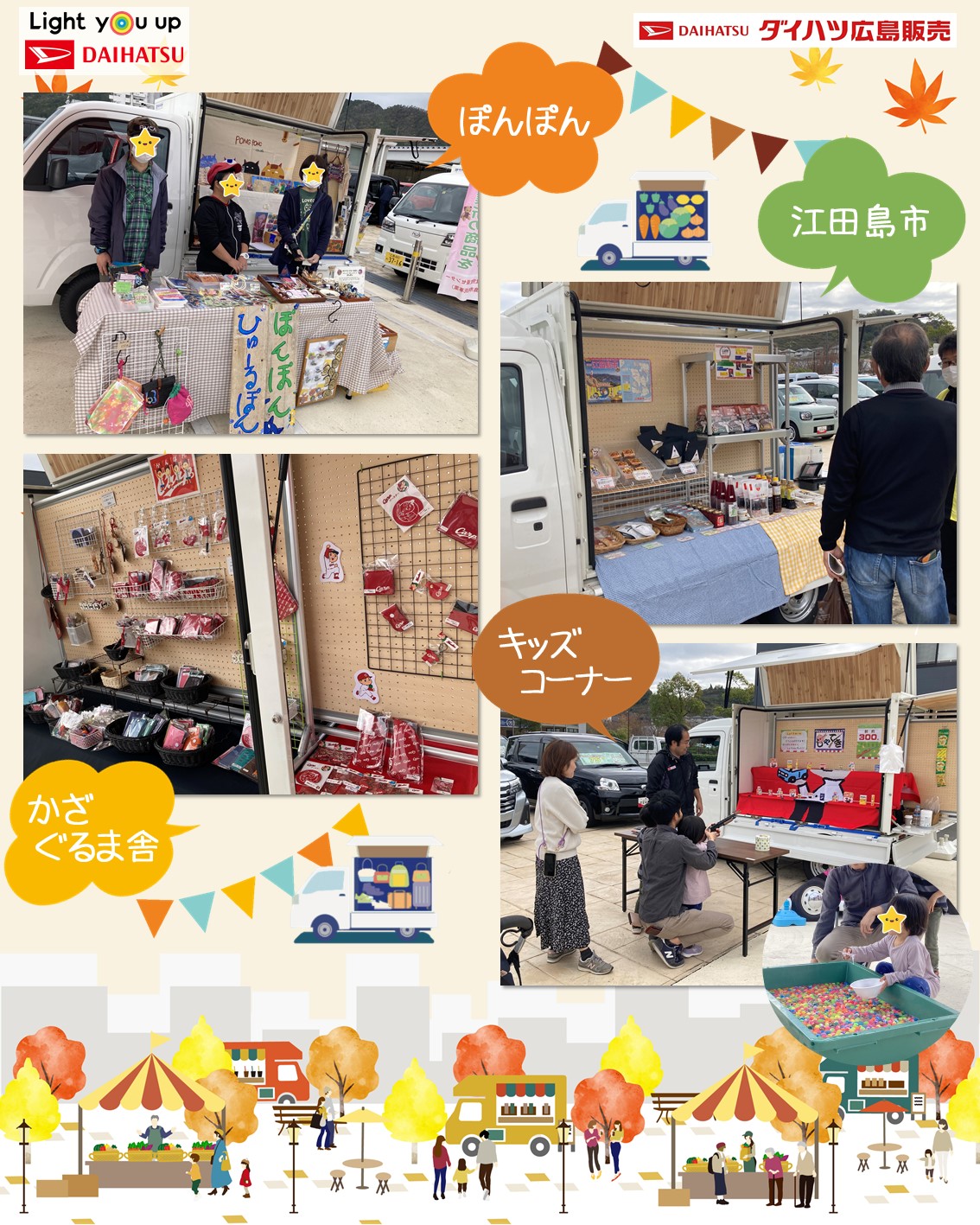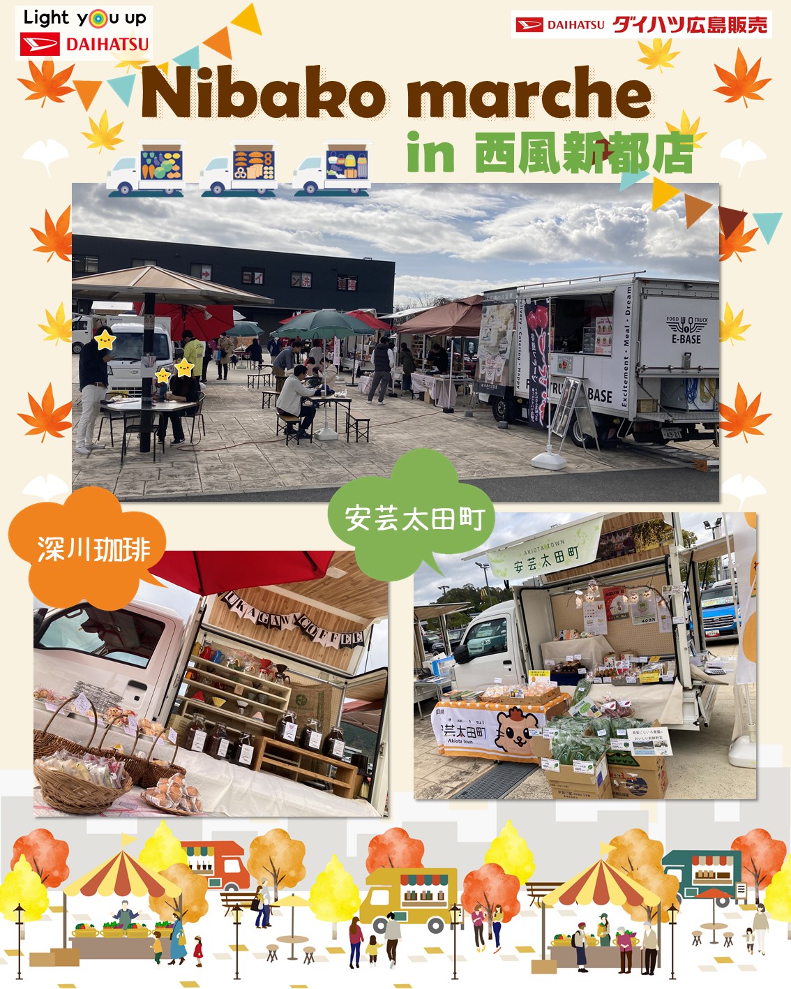 11月11日(土)、ダイハツ広島西風新都店にて「第3回Nibakoマルシェ」を開催しました。
