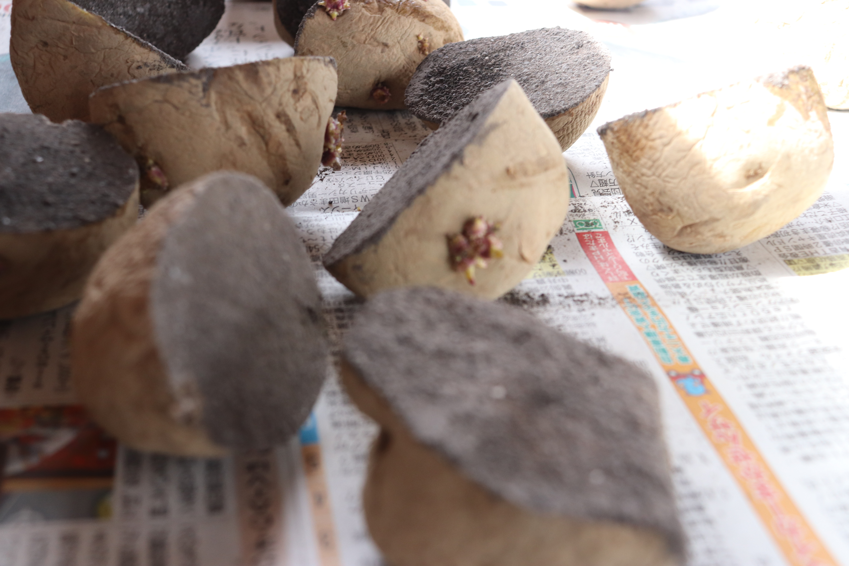 じゃがいもの準備や土を耕す作業、キクラゲの菌打ち体験も行いました。
