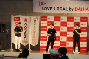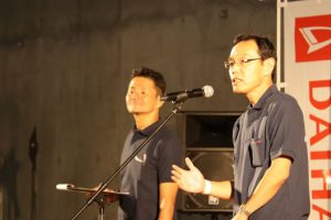 そしていよいよダイハツ工業 殿村さんと榊原さん(写真下)のトークショーです。COPENイベントを各地で行った話であったり、性能の話であったりイベントでしか聞けない話がたくさん。しかも全国200台限定販売のコペンクーペの話まで!!