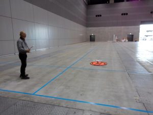 ドローンでの撮影もご協力いただくことに!!会場をテスト飛行。
