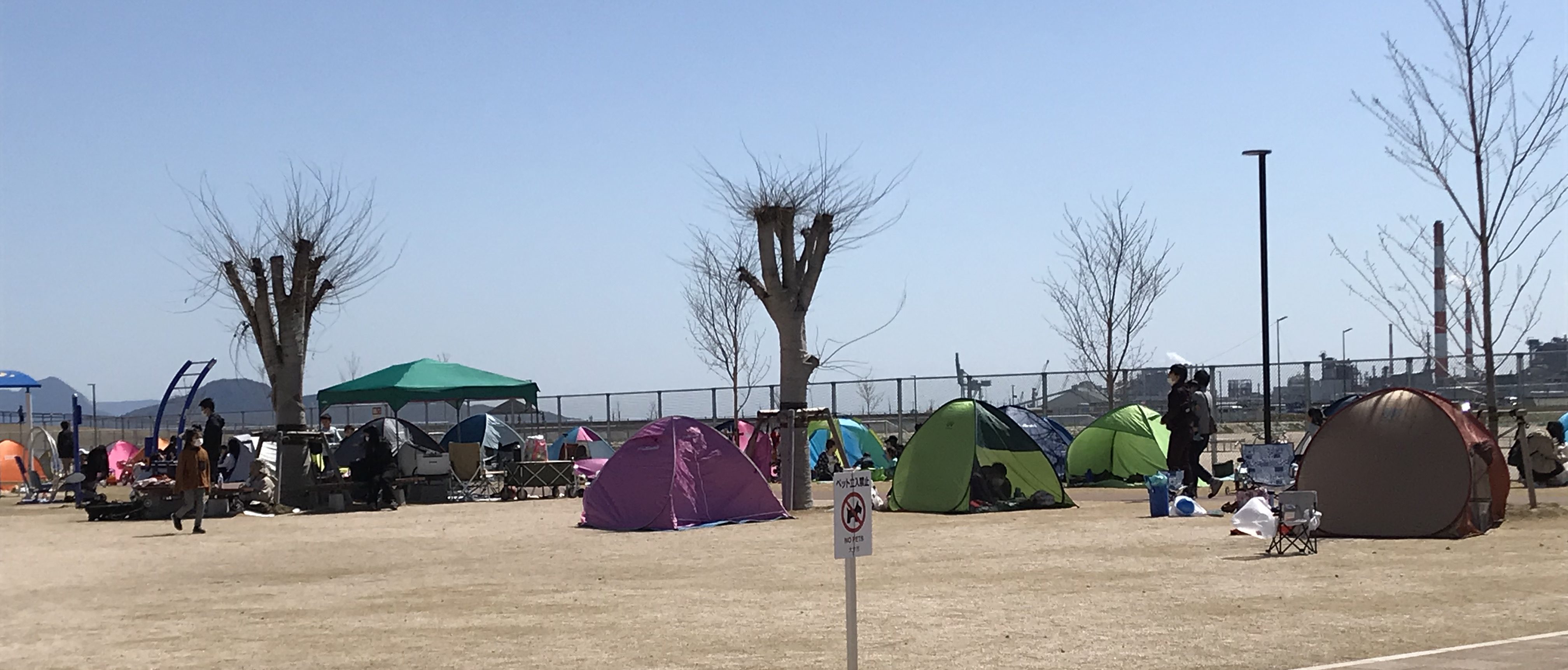 海沿いで風が強いせいか、簡易テントを張っている光景が多くみられました。
