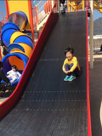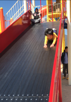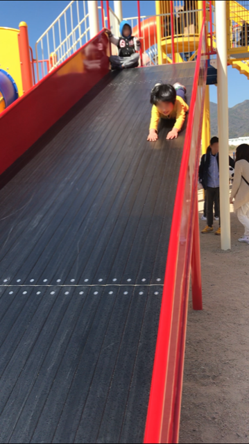 この長―い滑り台は必ず段ボールなど敷いて滑らないと翌朝大変なことになります。