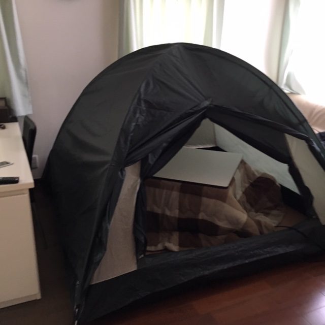 テント内にコタツをセット!なかなかの出来栄えです( ´艸`)