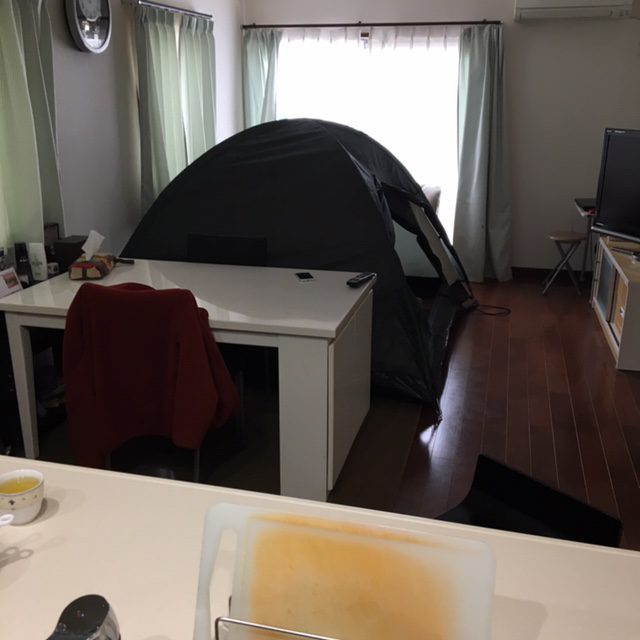 ってことで、では自宅リビングにテントを張ろうと思い立ち設営~
