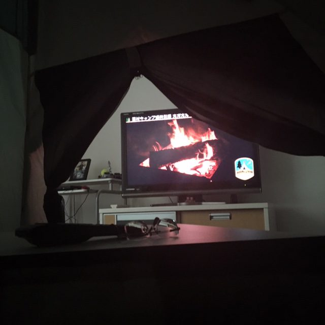 夜は照明を落としてコタツの中から焚火の動画をまったりと鑑賞( ´艸`)