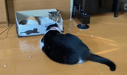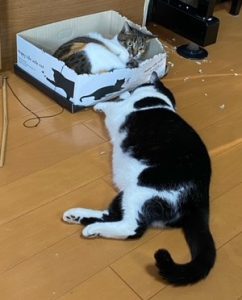 反省しているにゃんこちゃんとふくちゃんです。