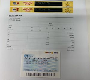 ロト7を購入して5つ数字が揃って4等8300円ゲットしたみたいで!!