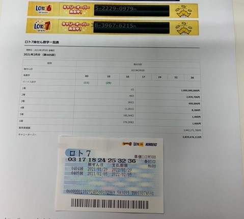 でも今回ロト7で1人10億円をゲットしてる !(^^)!