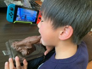 まさかこんな立派な恐竜チョコを持ってくるとは(笑)
