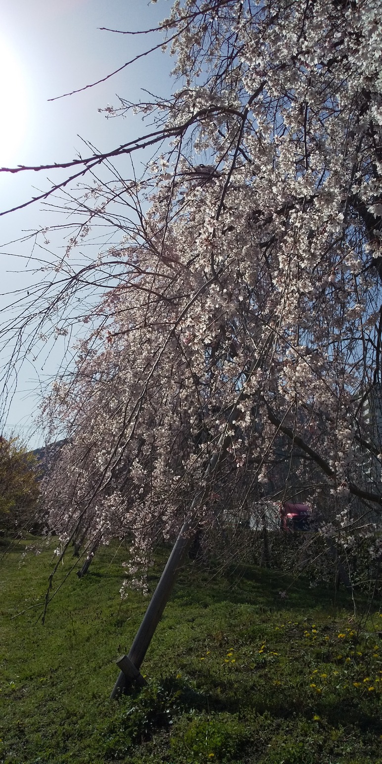 穏やかな天気が続くなか、隣接する”こころ西風梅苑”の枝垂れ桜が満開となりました。