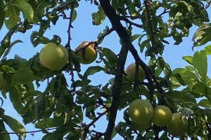 庭のすももの木に実がなり