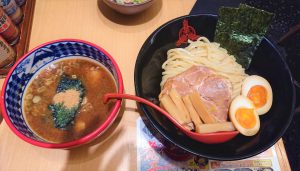 濃厚豚骨魚介スープの極太麵で煮干しの味がとても効いており