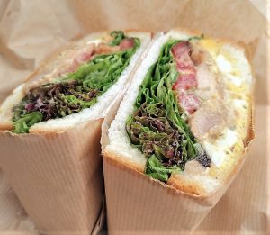 照り焼きチキンサンドイッチや焼き立てワッフル、