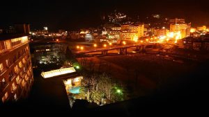 水明館では下留の湯、野天風呂、展望大浴場と三つ温泉があり