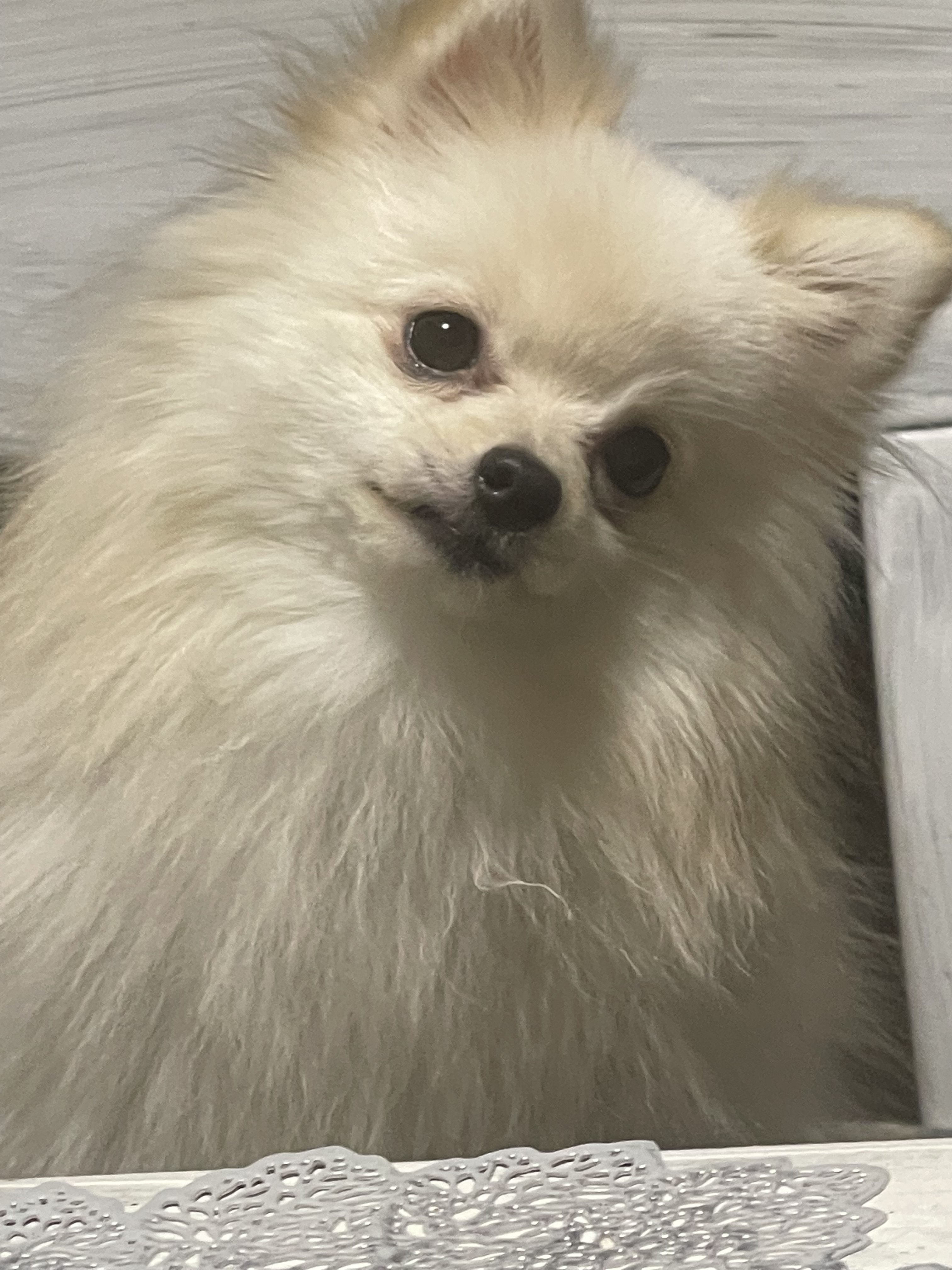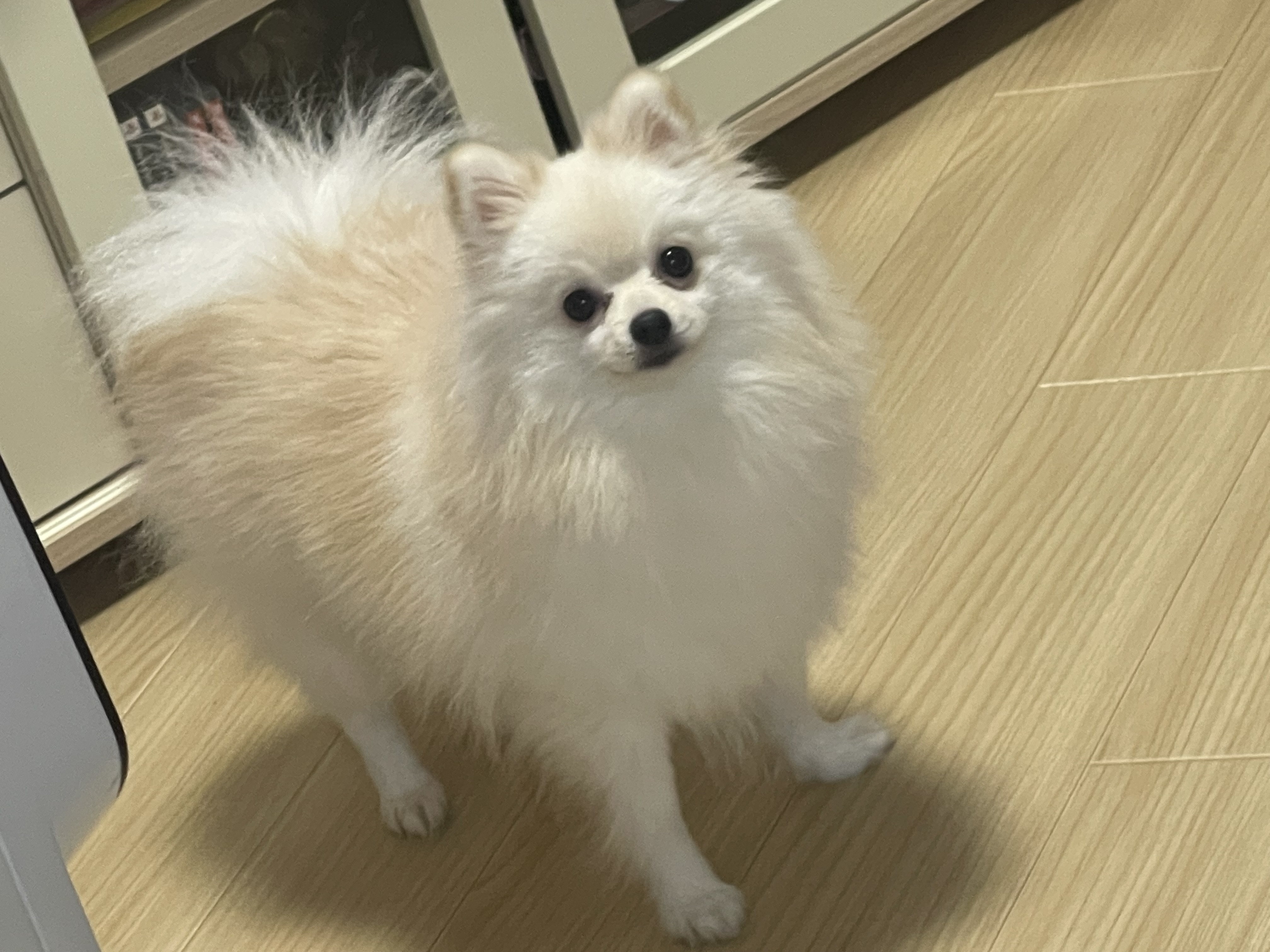 純ポメラニアンなのですが、毛がふさふさになってもなぜか顔がチワワ感あります(;´Д`)