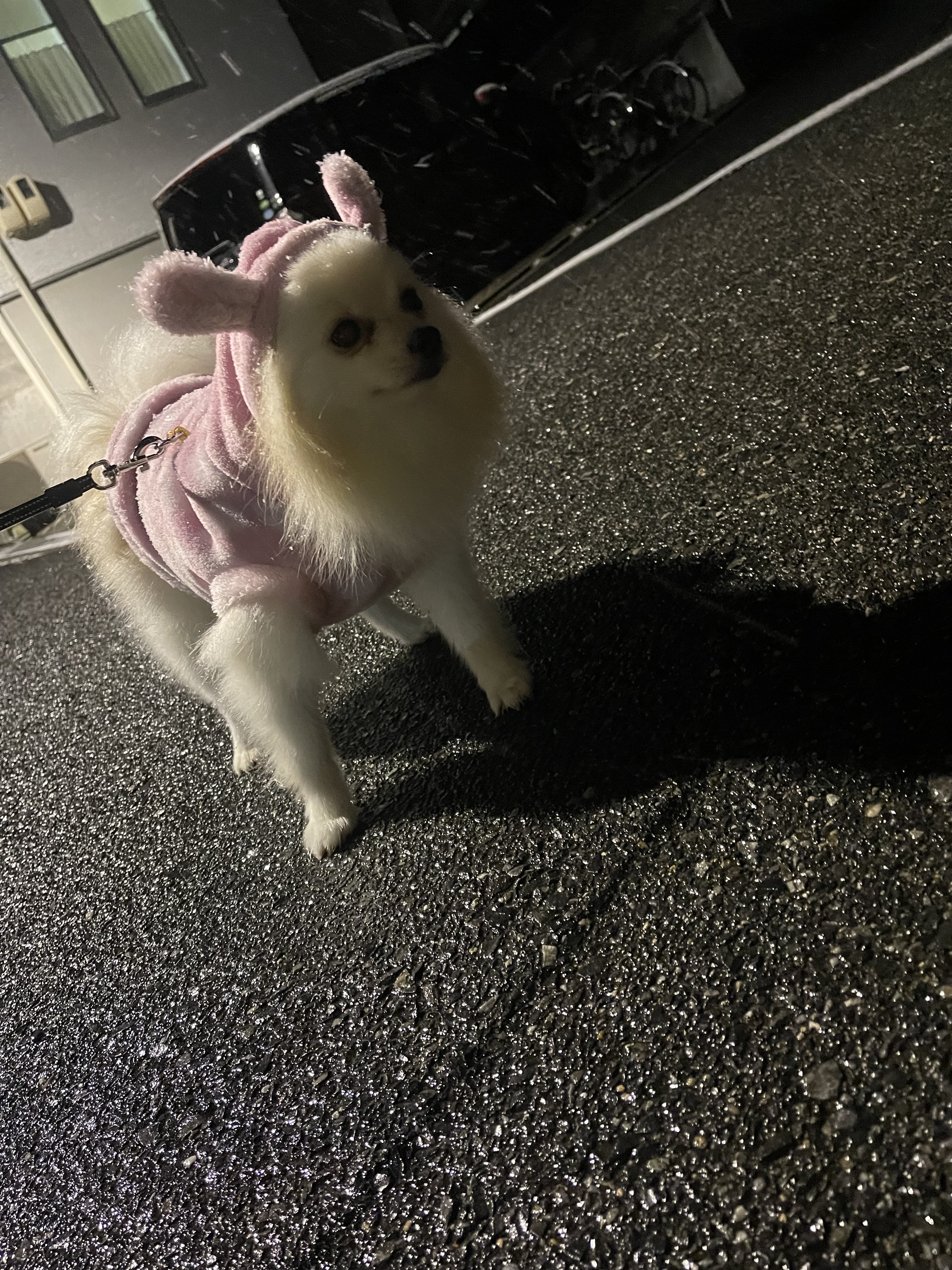 この日は、雪の日にうさ耳のついた洋服を着せて歩きました♪
