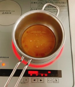(お砂糖80g 水大匙2、煮詰まったら水大匙1 はねるのでやけど注意!)