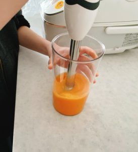 ブレンダーで滑らかにして、(炊飯器が邪魔ですね・・・)