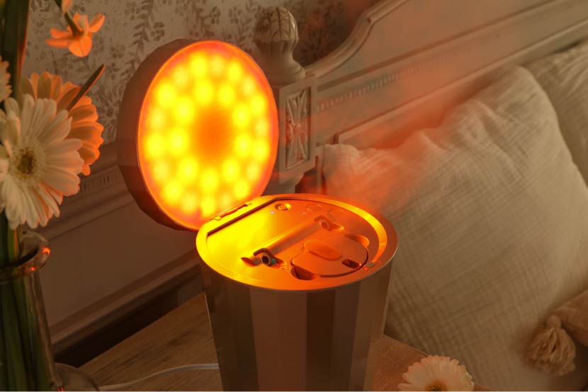 温スチームと冷ミストの時で違う色のLEDを浴びることができます。