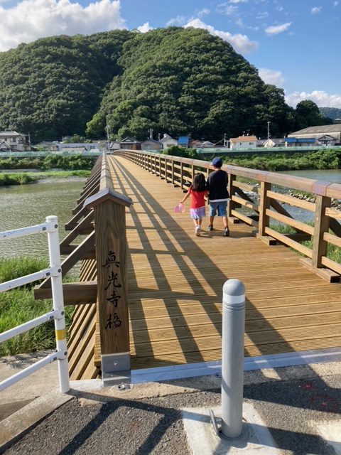 あれから4年。現在は木造風ですが、きれいな橋が完成したので子供たちと渡ってみました。歩行者専用の橋で