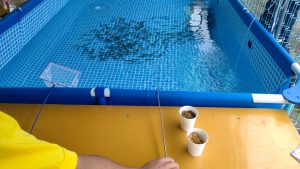 学生達が、やっている「釣り堀カフェ」。