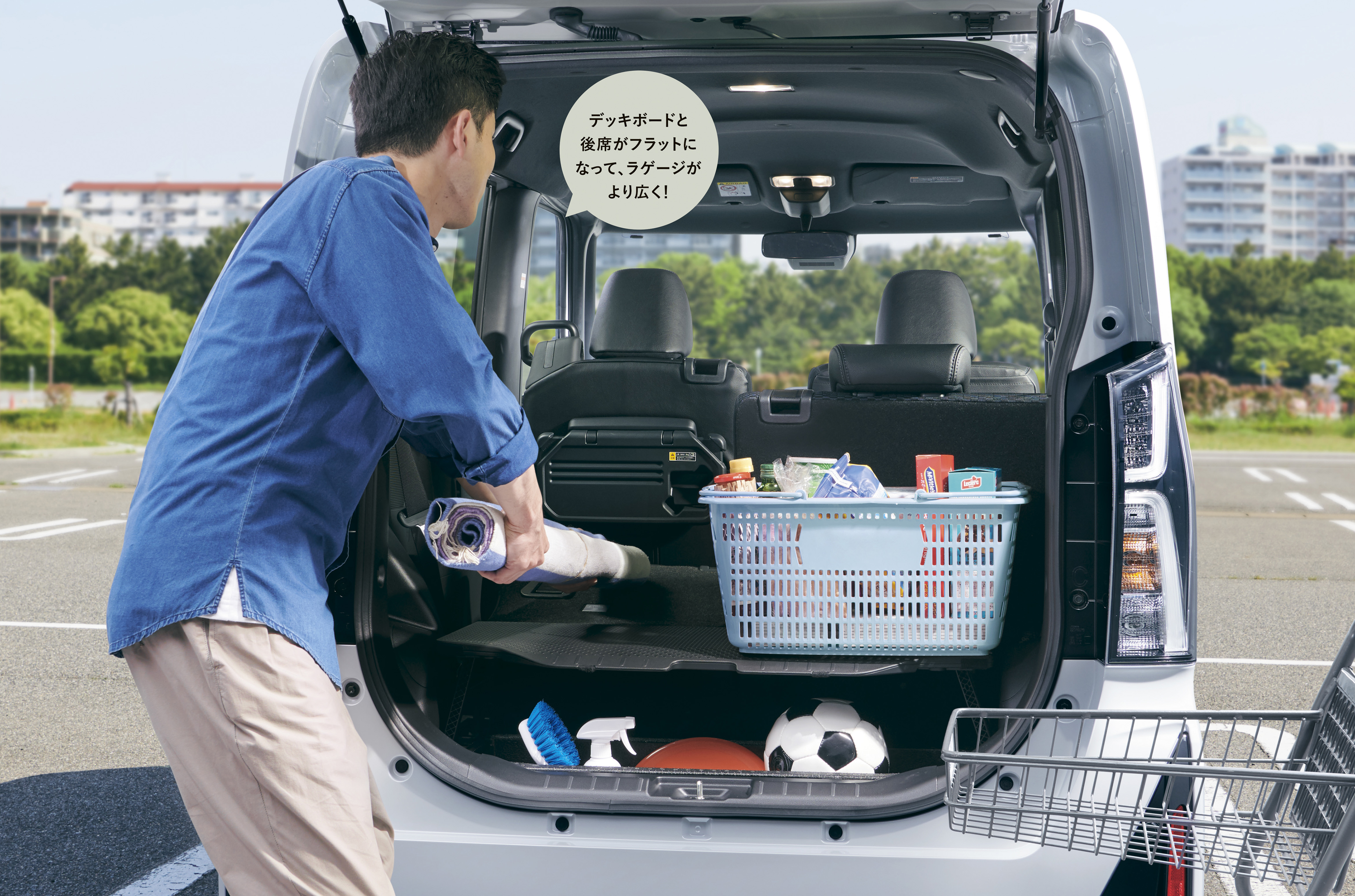 後席を倒して2段にするとデッキボードの上段と下段でたくさん荷物を乗せることができます!