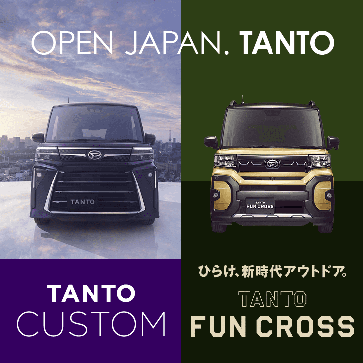 タント(ブラックマイカメタリック)、タントカスタム(シャイニングホワイトパール)、タントファンクロス(レーザーブルークリスタルシャイン)、キャンバス ストライプス(シャイニングホワイトパール×レイクブルーメタリック)/セオリー(レーザーブルークリスタルシャイン)