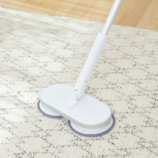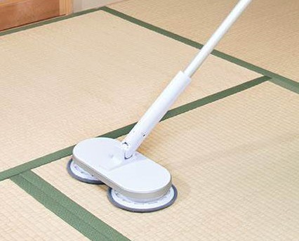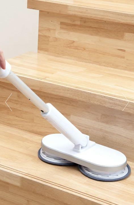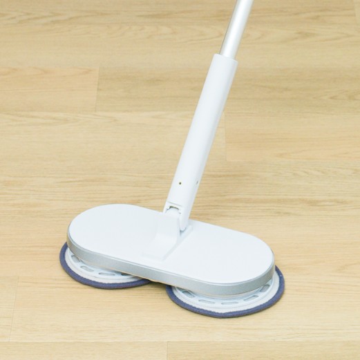 2枚のパッドが回転し、勝手に床を拭いてくれるので、私はスティック本体を持っているだけです(笑)