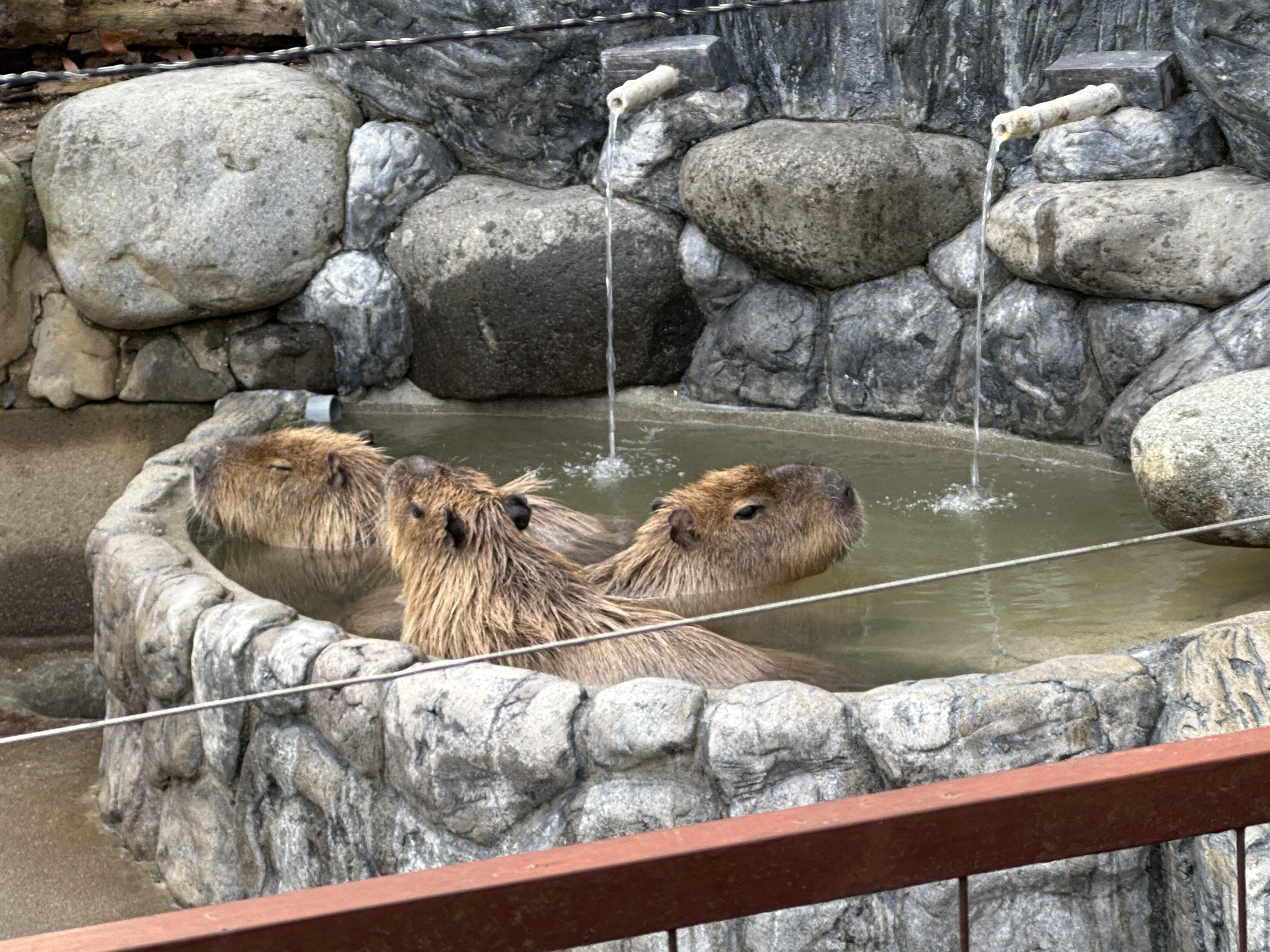 カピバラの打たせ湯タイム!