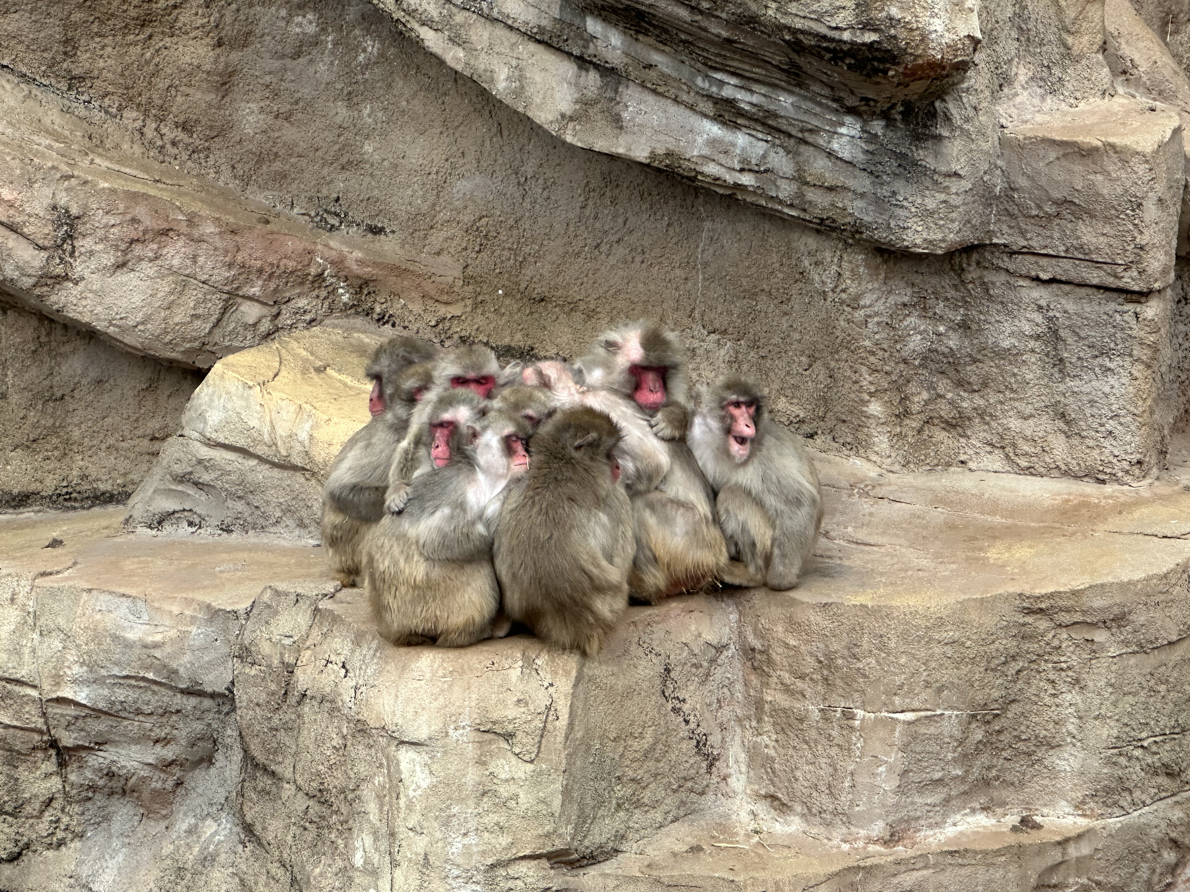 この日はとっても寒かったので、猿たちもこのようにくっついていました~!