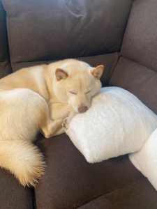 Blog 本社ブログ 総合センター 我が家のペット紹介 2023-02-10 我が家のペットのご紹介♪ 柴犬 ハチ(オス) 飼い始めて今年で4年目になります。 ペットショップで 一目惚れしてしまいました。 生後2ケ月頃から飼い始めたので、 とても小さく可愛かったのですが、 今は少し標準よりも大きくなってしまいました。 白柴なので、よくソフトバンクのお父さん犬? (北海道犬)と聞かれる事もよくあります。 お気に入りのソファでクッションを枕にして お昼寝が大好き (*^-^*) 日々癒されています。 前の記事へ 一覧に戻る 次の記事へ