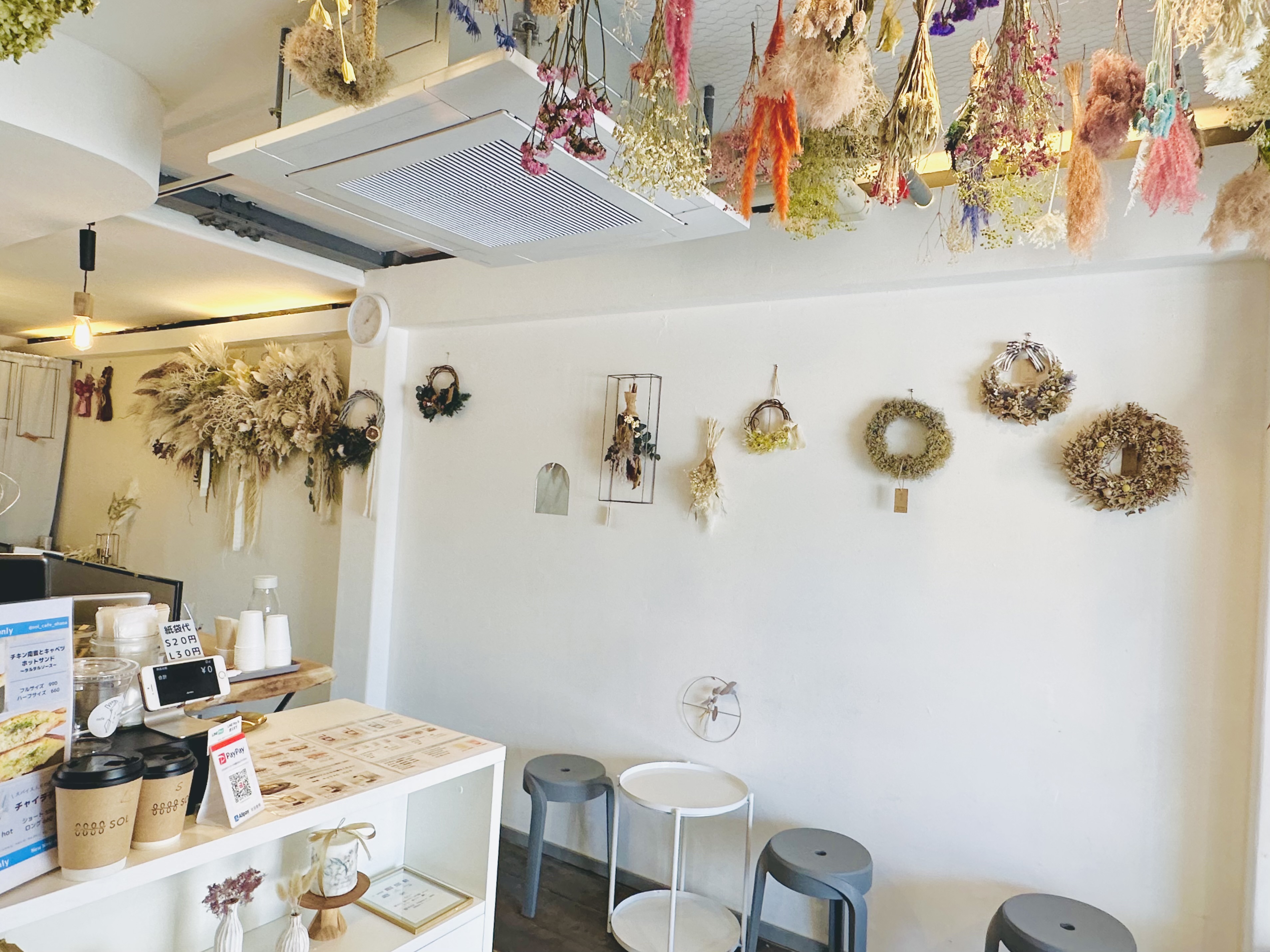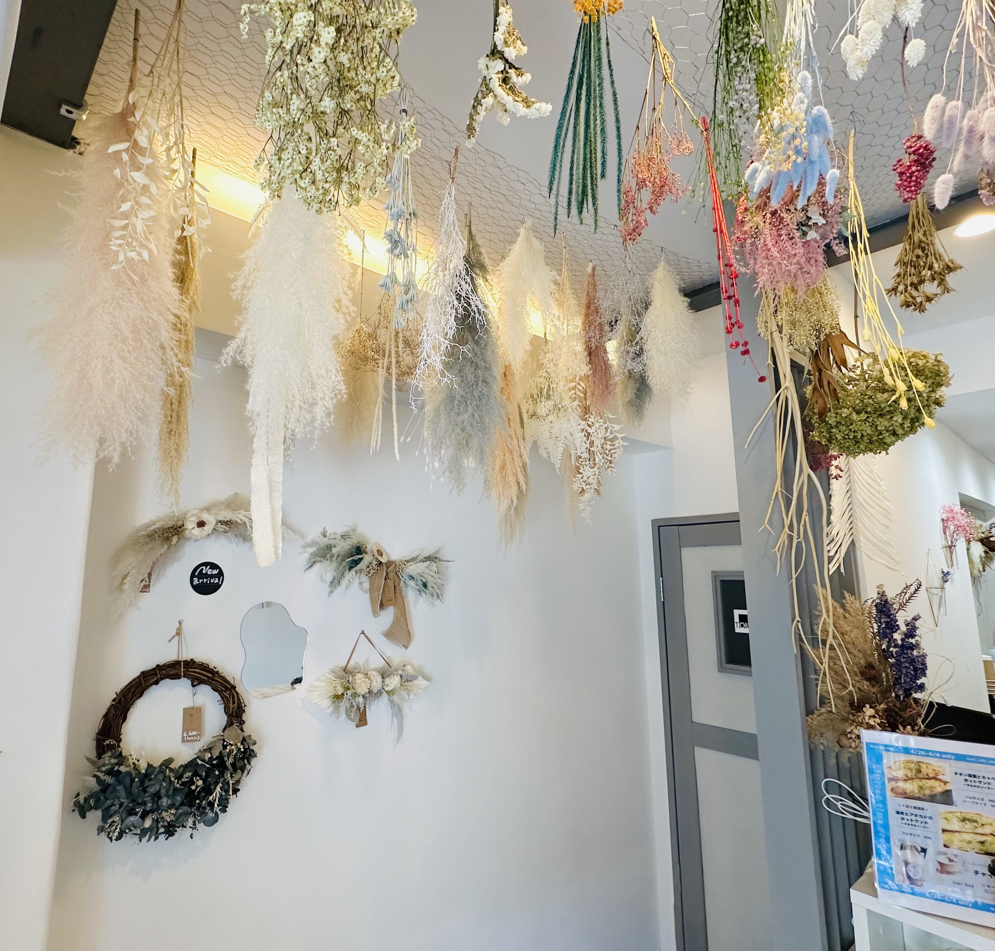 入ってすぐたくさんのドライフラワーに癒されます♡