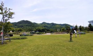 子供の遊具や足湯もあり