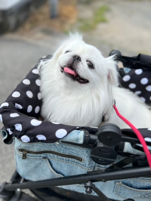 酷暑だった今年の夏、ももはカートに乗って散歩をすることを覚えました。もちろん所々でカートから降りて歩きますが、すこーし歩いたらカートの横でストップして「乗せろ」と見上げてきます。早く涼しくなって欲しいものです。