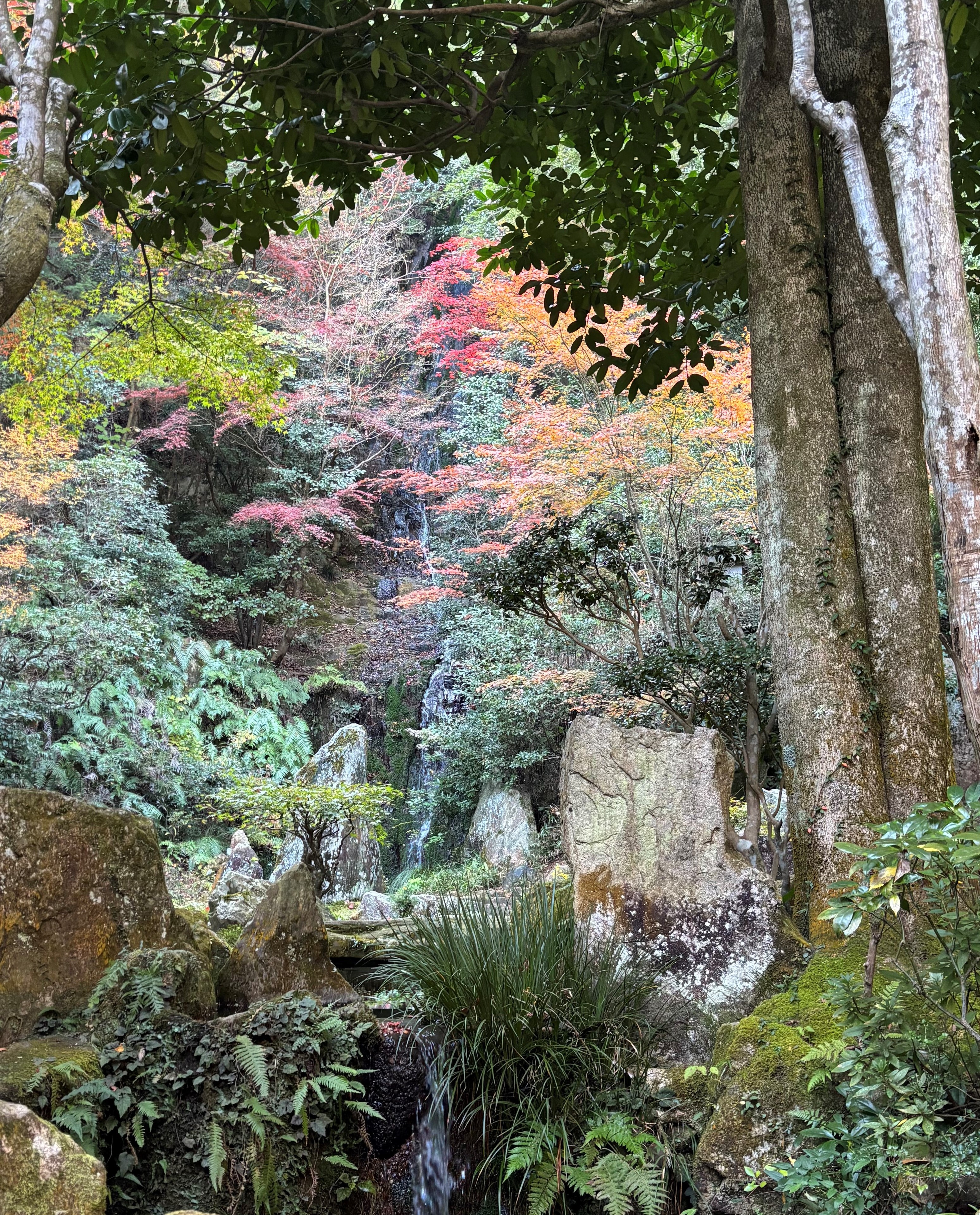 しっかりお参りした後の帰り道で長さのある滝と紅葉の写真を撮りました📸