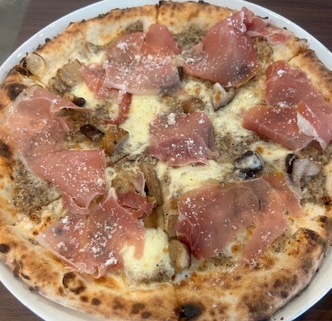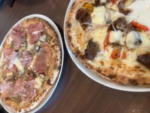 お肉のピザと、生ハムときのこのピザを注文🍕