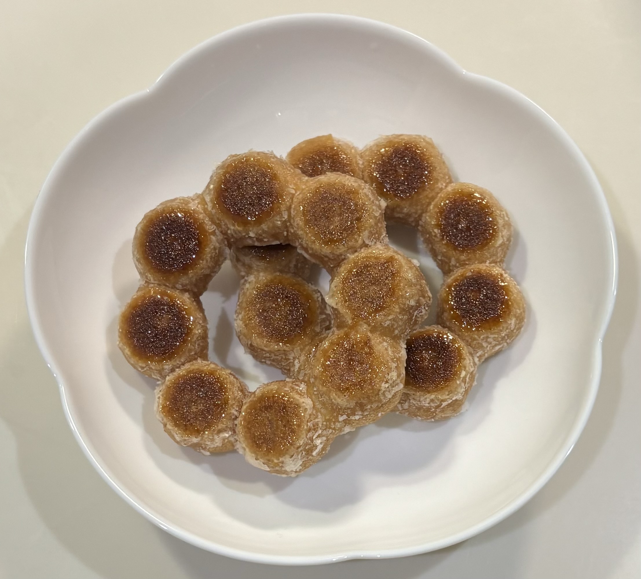 この際、最初に砂糖がついている方を下にして焼いていきます。