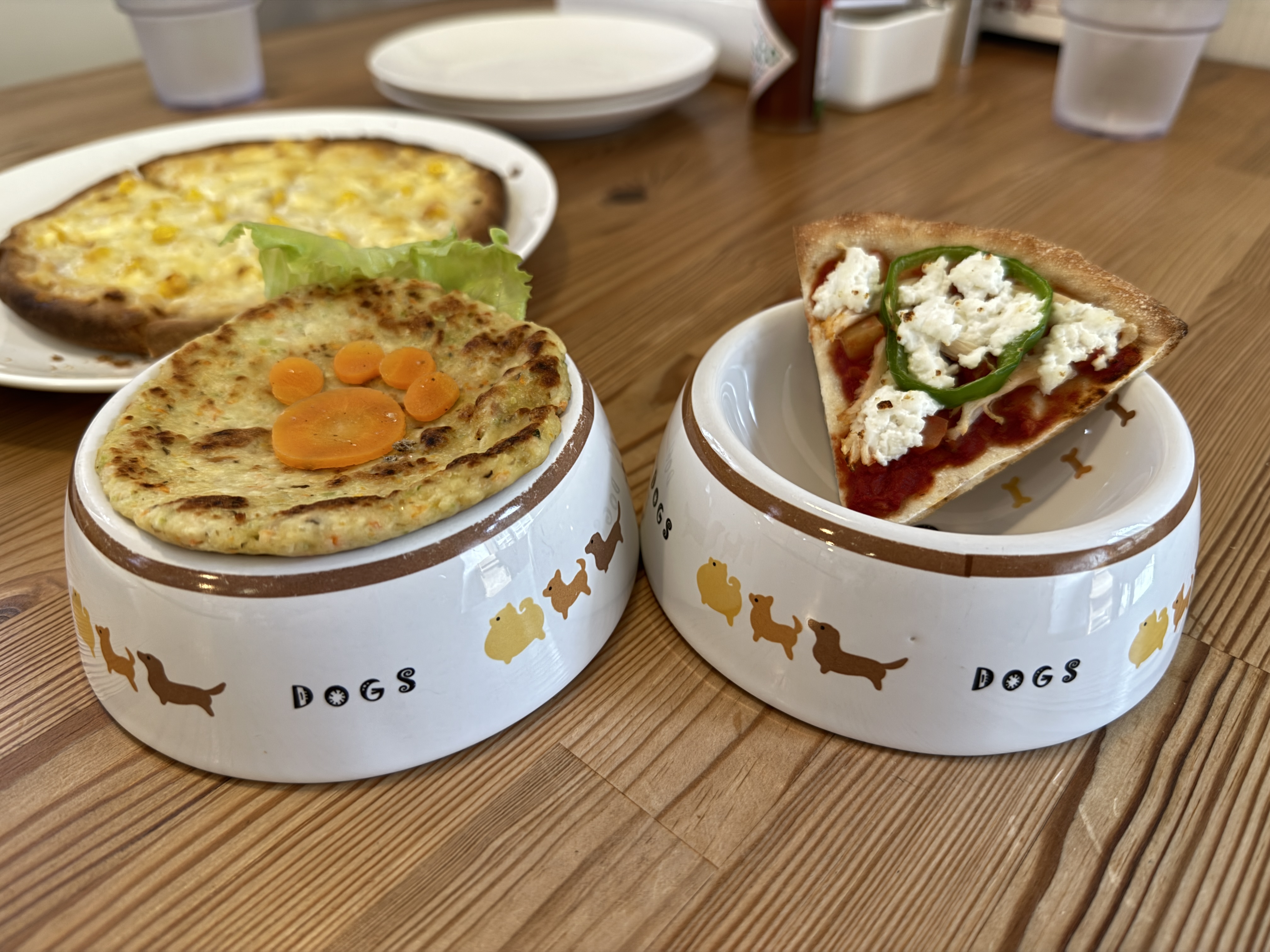 人間用の食べ物はピザとホットサンド数種類から選べます!