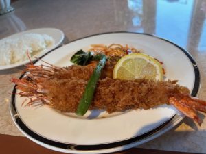 ハンバーグも大きいのですがさらにエビフライが大きくてびっくり!!
