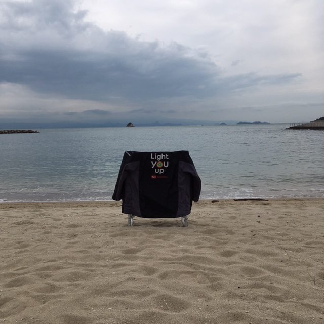 ビーチに人が誰もいなかった為、ディレクターチェアにジャンバーを