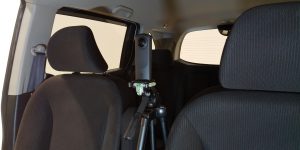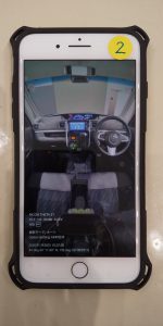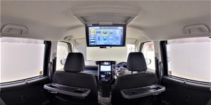 上の画像は後席にカメラをセッティングし、天井の後席モニターを撮影しました。