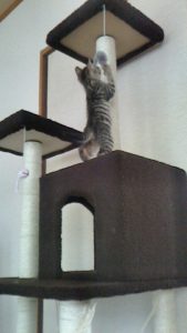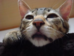 たまに視線を感じ、見上げたらキャットタワーからこんな顔で見ていたり