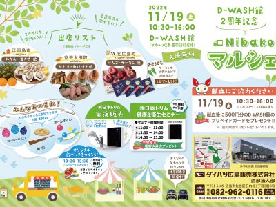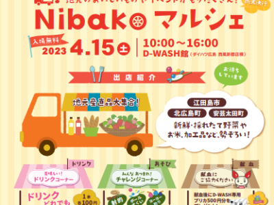 【西風新都】Nibakoマルシェ開催予告🏁 2023.04.07 \Nibakoマルシェ開催決定!!/ 2023年4/15(土)、 D-WASH館(ダイハツ広島西風新 […] ダイハツ広島販売(株)本社