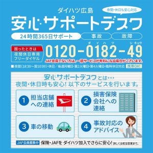 休業中にお車に関するトラブルが発生した場合は、安心サポートデスクにご連絡をお願い致します。