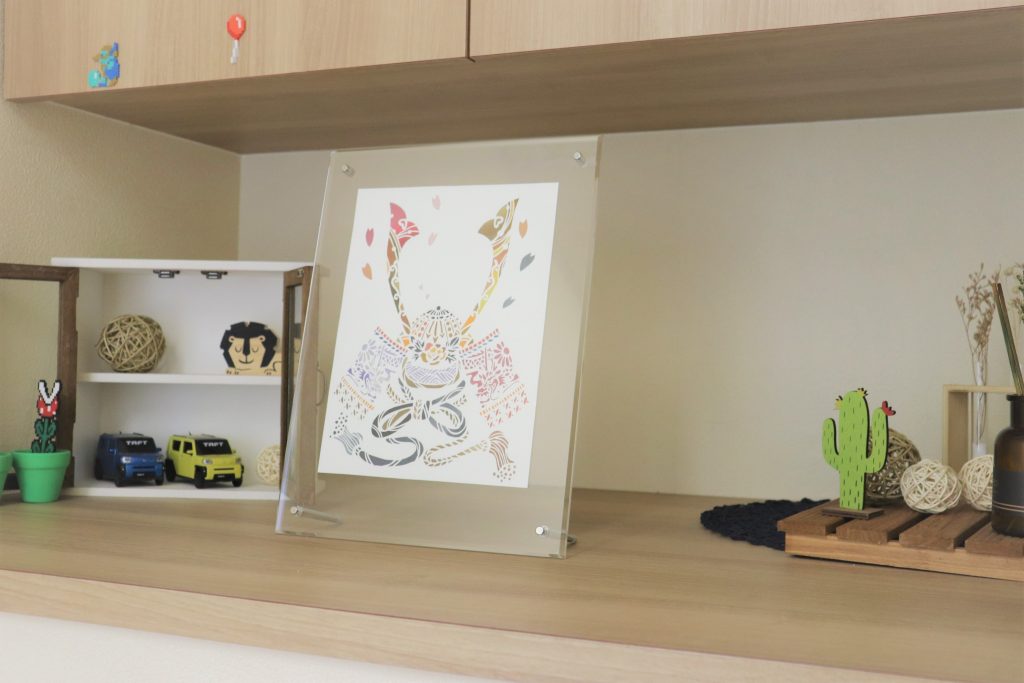 当店スタッフ作成の切り絵を飾っております。数々の繊細な切り絵作品をぜひご覧になってください。