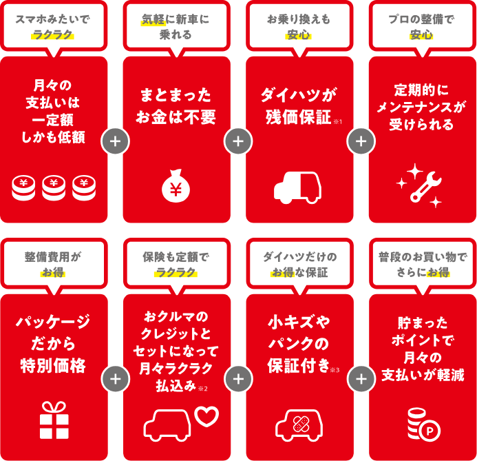 - ※1. 残価保証は車両状態が事前に定めた条件を満たしている場合に限ります。