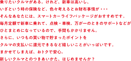 オトクで安心なサービス「スマート カーライフ パッケージ」のご紹介。