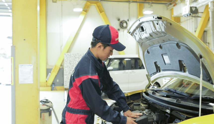 就職活動で整備工場を見学させていただいた時、職場の雰囲気がとても明るい印象だったのがダイハツ広島です。スタッフ皆の仲が良さそうで、ここならしっかりとした人間関係を築くことができそうだと思いました。